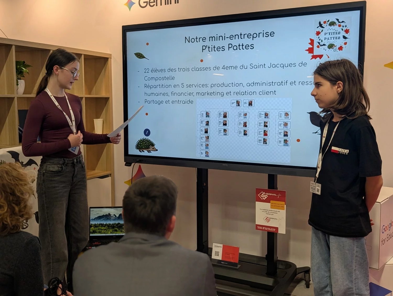 Deux collégiens de la mini-entreprise ont eu l’opportunité de représenter « P’tites Pattes » lors du salon Educatech Expo, dédié à l’innovation pédagogique et au numérique éducatif.